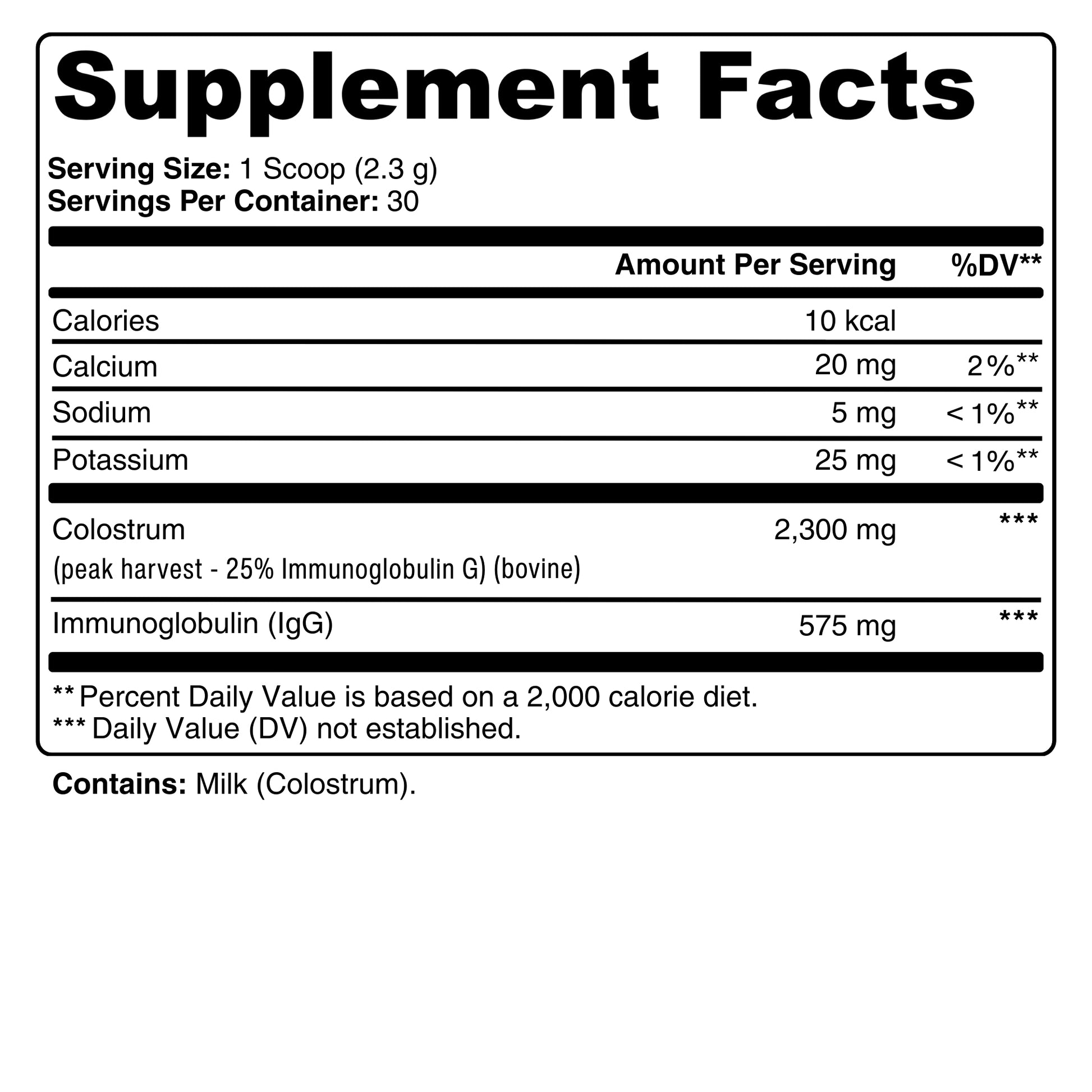 Peak-harvest bovine colostrum (25% IgG content)